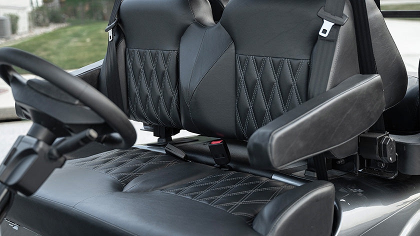 Sculpted with both comfort and functionality in mind, E-Z-GO's Model Year 2026 is bringing a new level of luxury to the seating game with automotive-style seating on the RXV®.